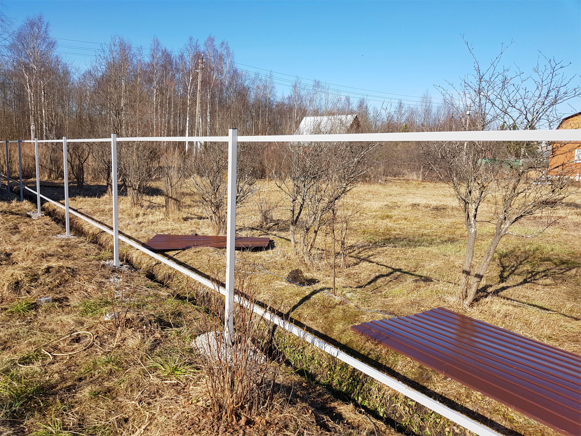 Забор из профнастила устанавливается в несколько этапов: