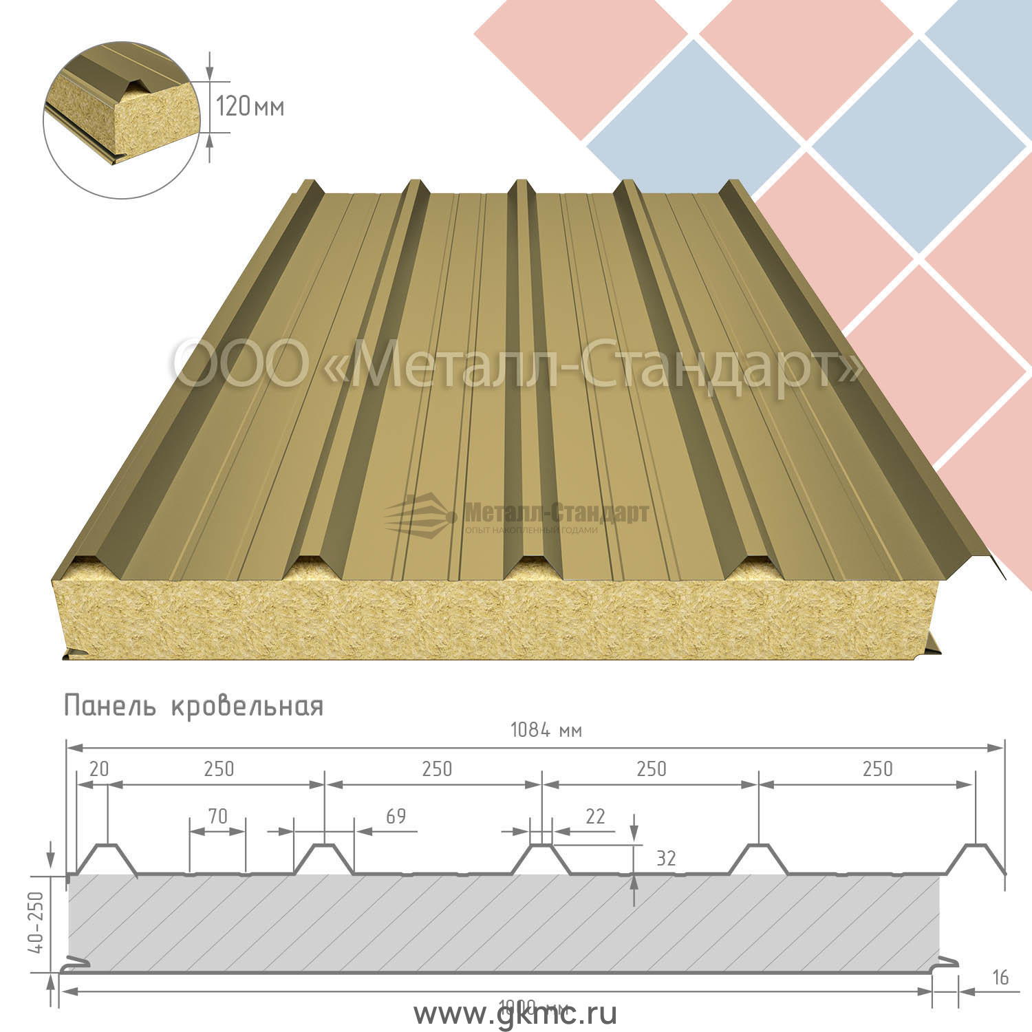 Кровельная сэндвич-панель 120 мм утеплитель минеральная вата RAL 1002 Песочно-жёлтый