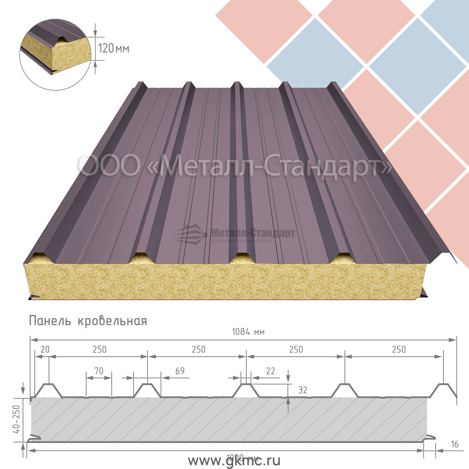 Кровельная сэндвич-панель 120 мм утеплитель пенополистирол RAL 4009 Пастельно-фиолетовый
