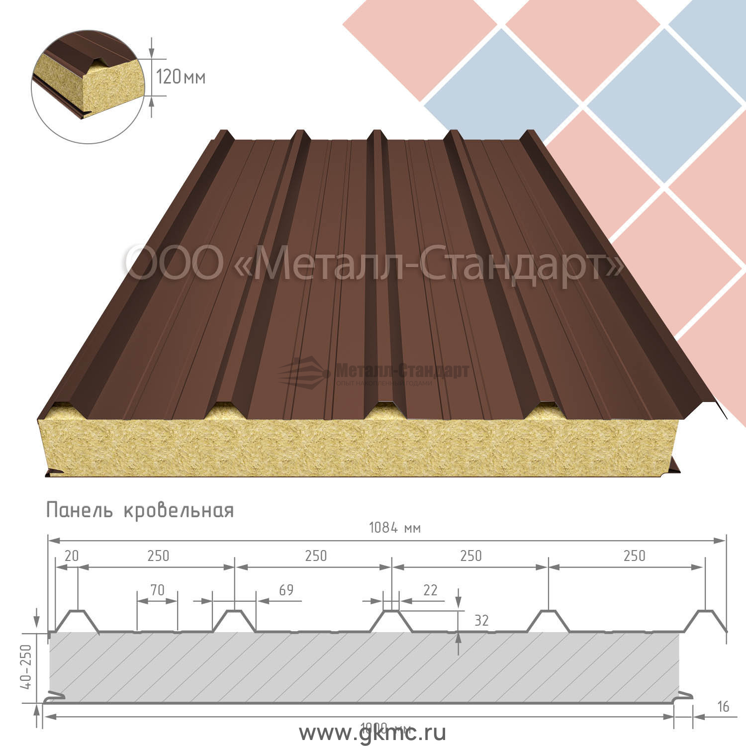 Кровельная сэндвич-панель 120 мм утеплитель пенополистирол RAL 8002 Сигнальный коричневый