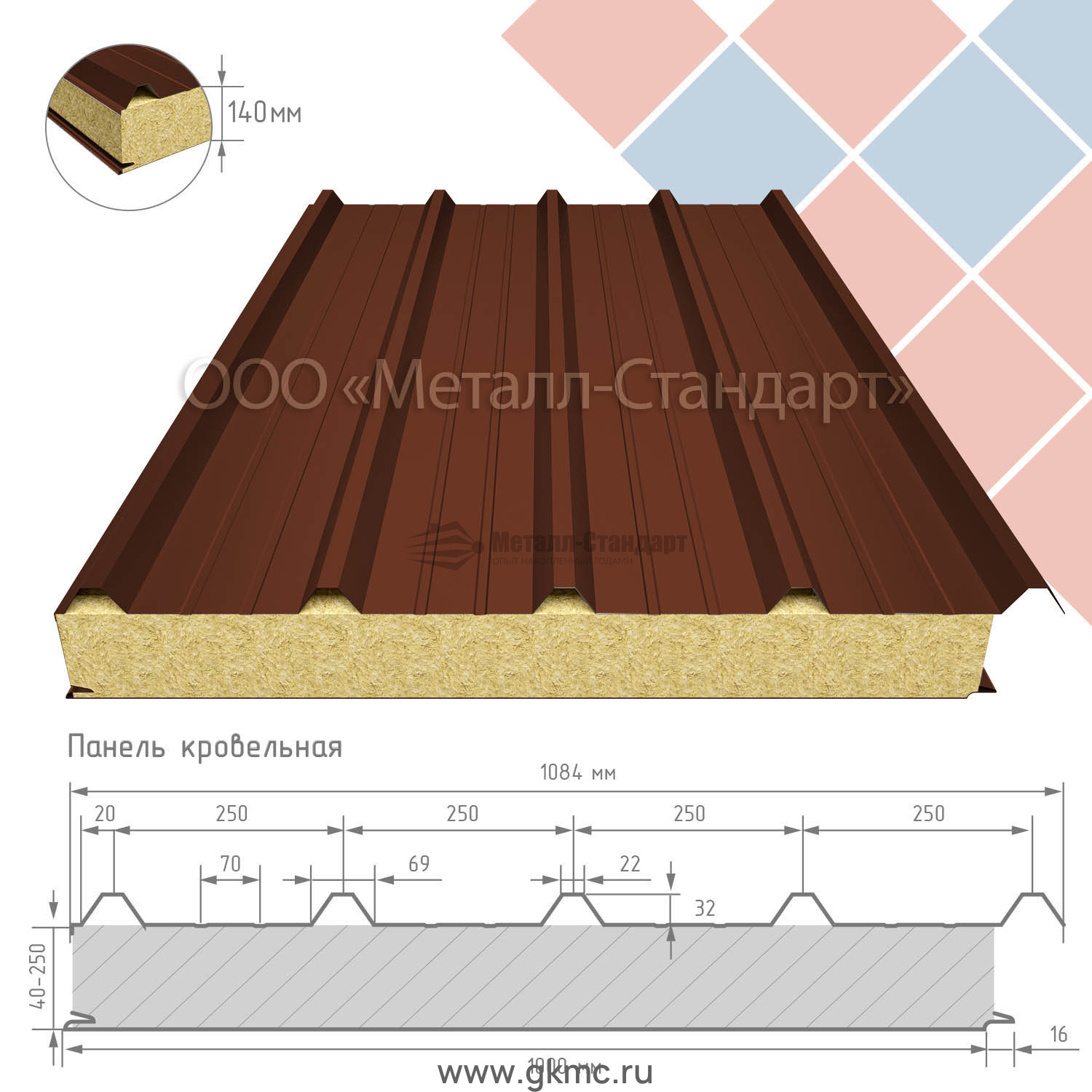 Кровельная сэндвич-панель 140 мм утеплитель пенополистирол RAL 8029 Перламутровый медный