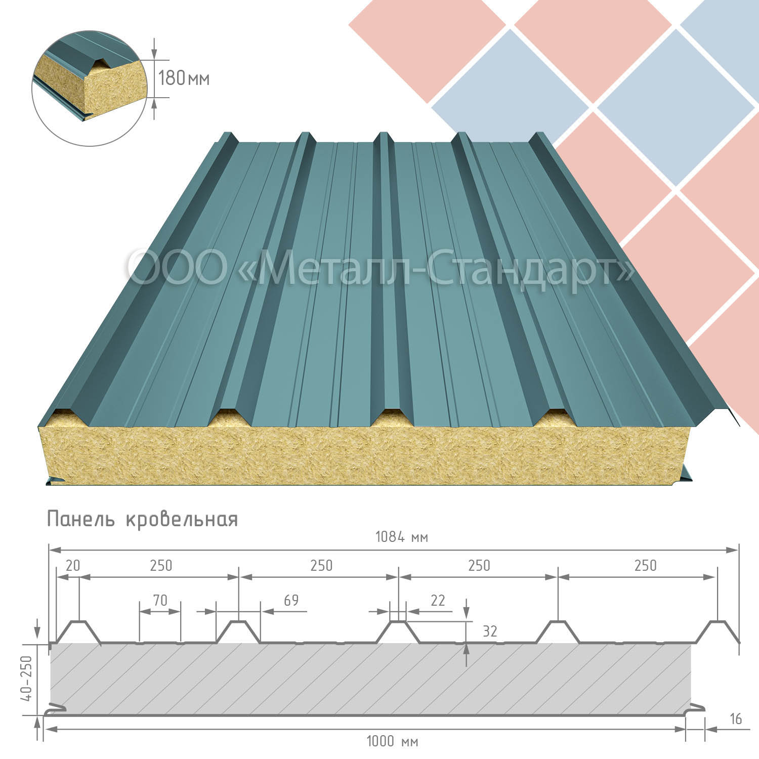 Кровельная сэндвич-панель 180 мм утеплитель минеральная вата RAL 6034 Пастельно-бирюзовый