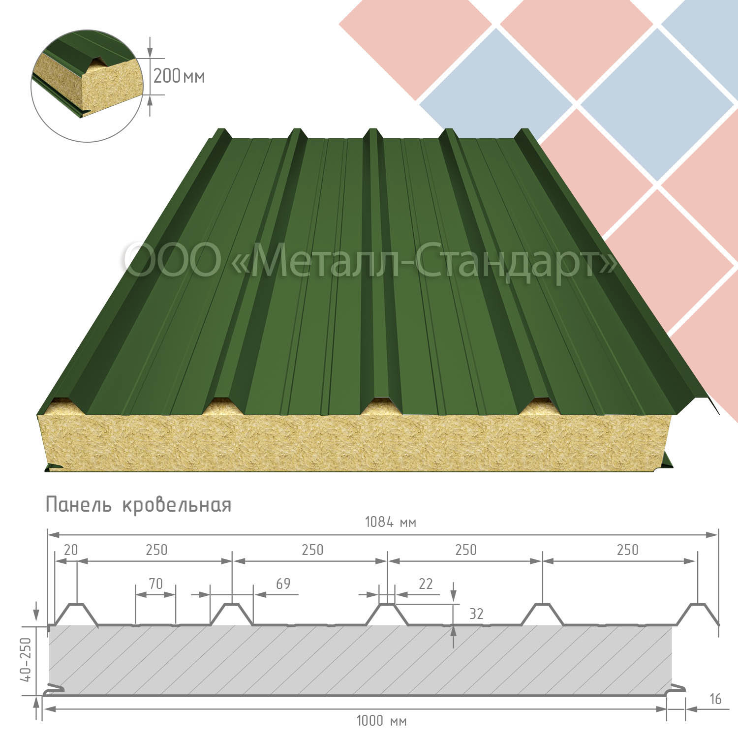 Кровельная сэндвич-панель 200 мм утеплитель пенополистирол RAL 6025 Папоротниково-зелёный