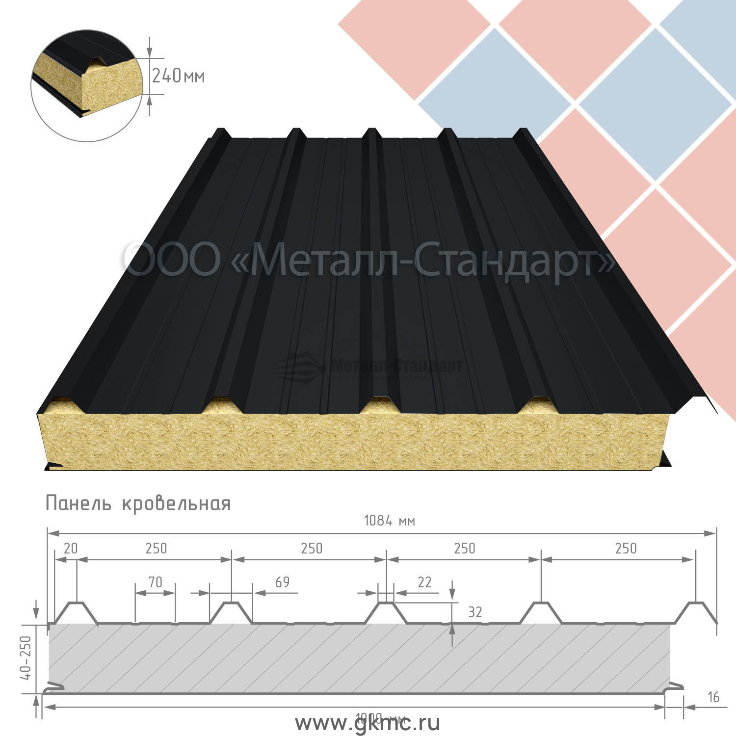 Кровельная сэндвич-панель 240 мм утеплитель минеральная вата RAL 9011 Графитно-чёрный