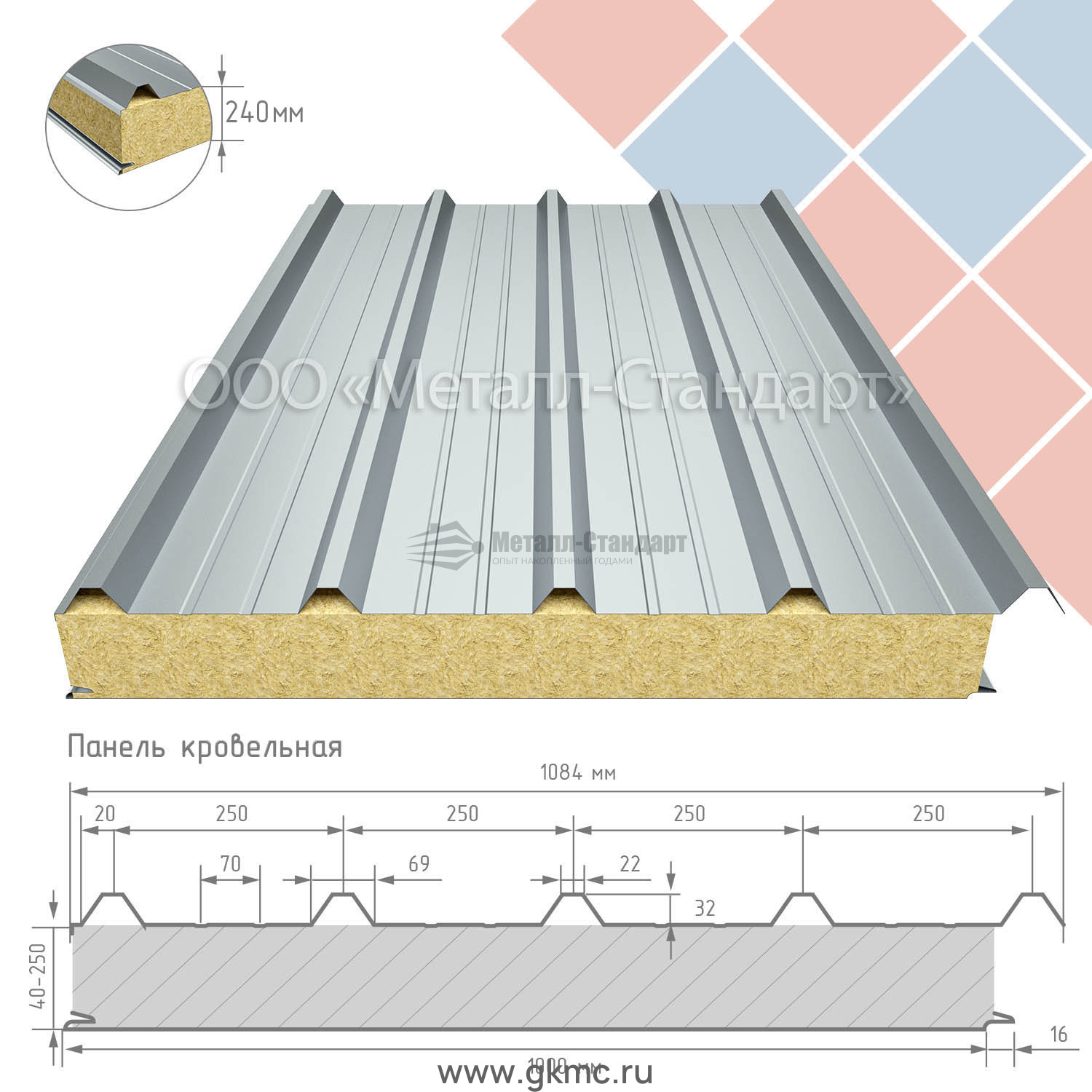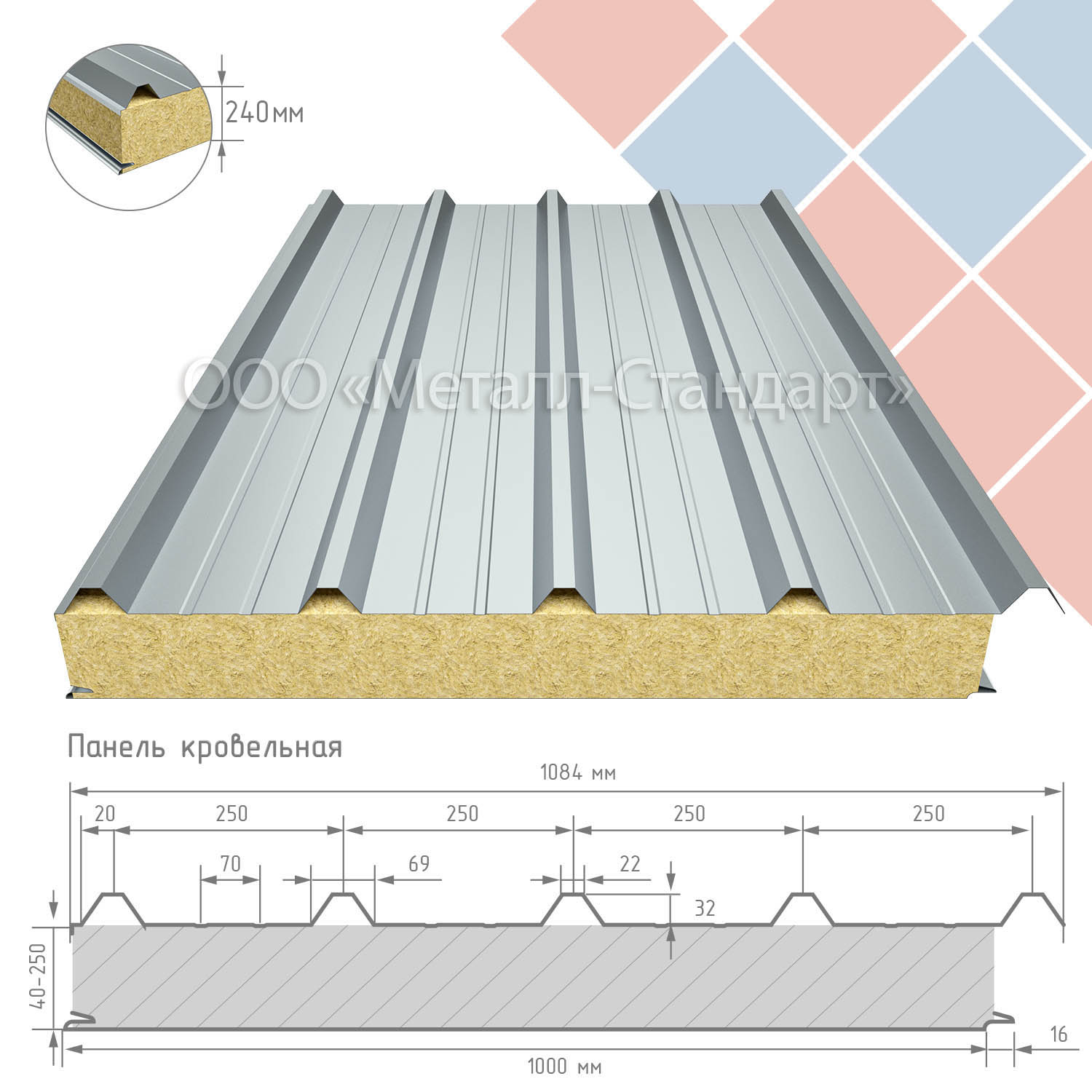 Кровельная сэндвич-панель 240 утеплитель минеральная вата
