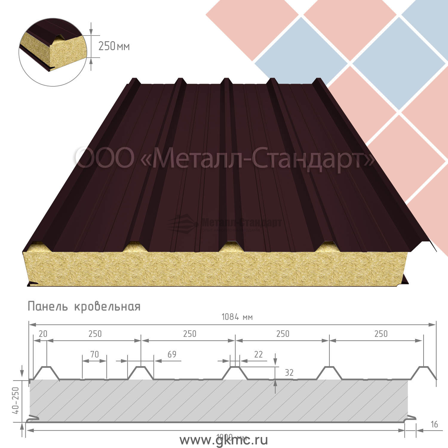 Кровельная сэндвич-панель 250 мм утеплитель минеральная вата RAL 3007 Чёрно-красный