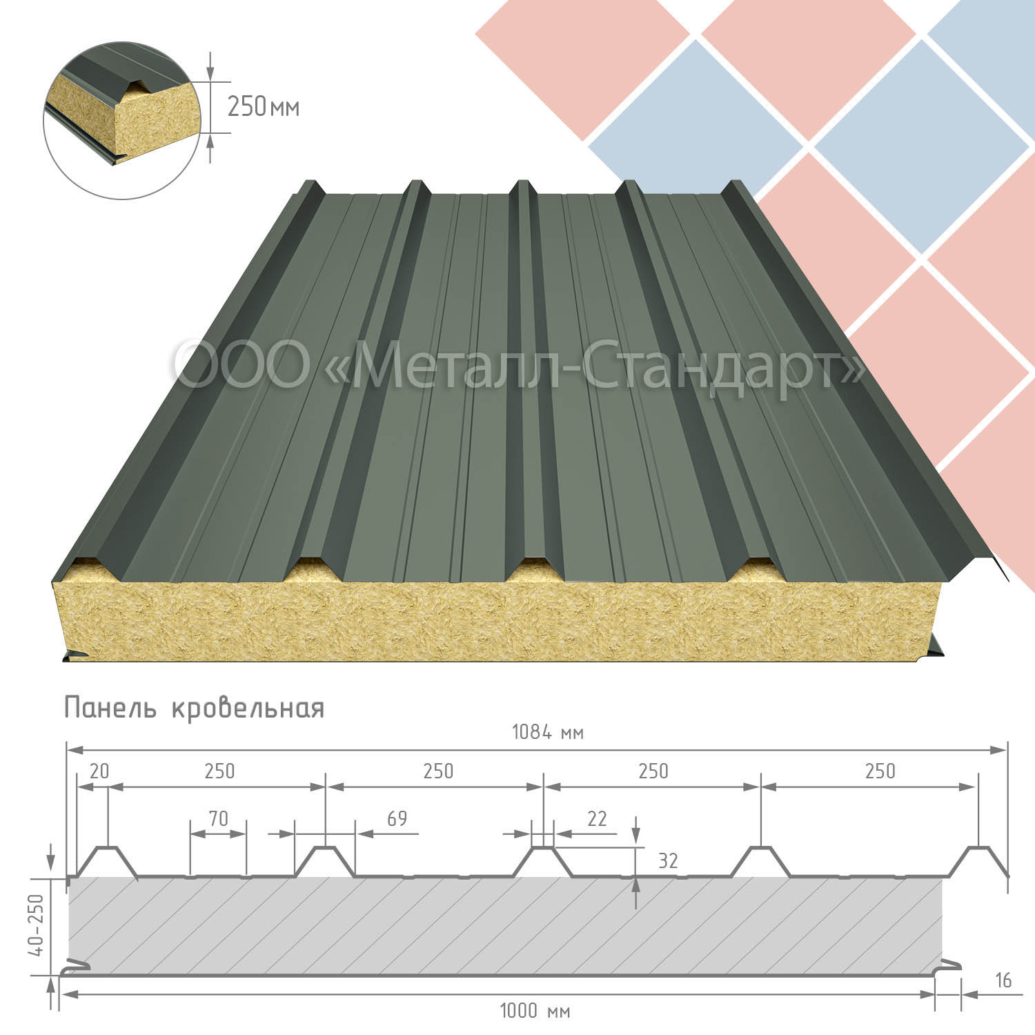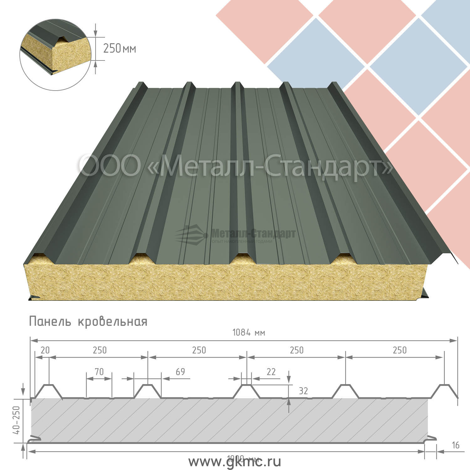 Кровельная сэндвич-панель 250 мм утеплитель минеральная вата RAL 7033 Цементно-серый