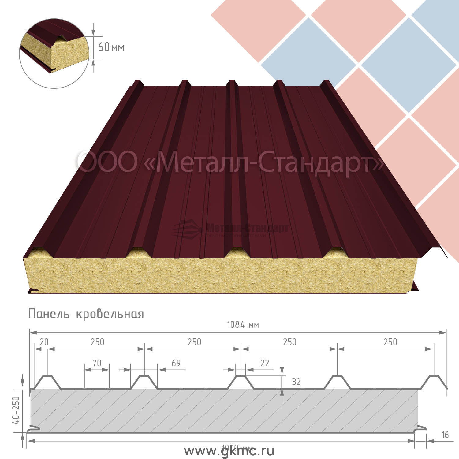 Кровельная сэндвич-панель 60 утеплитель минеральная вата